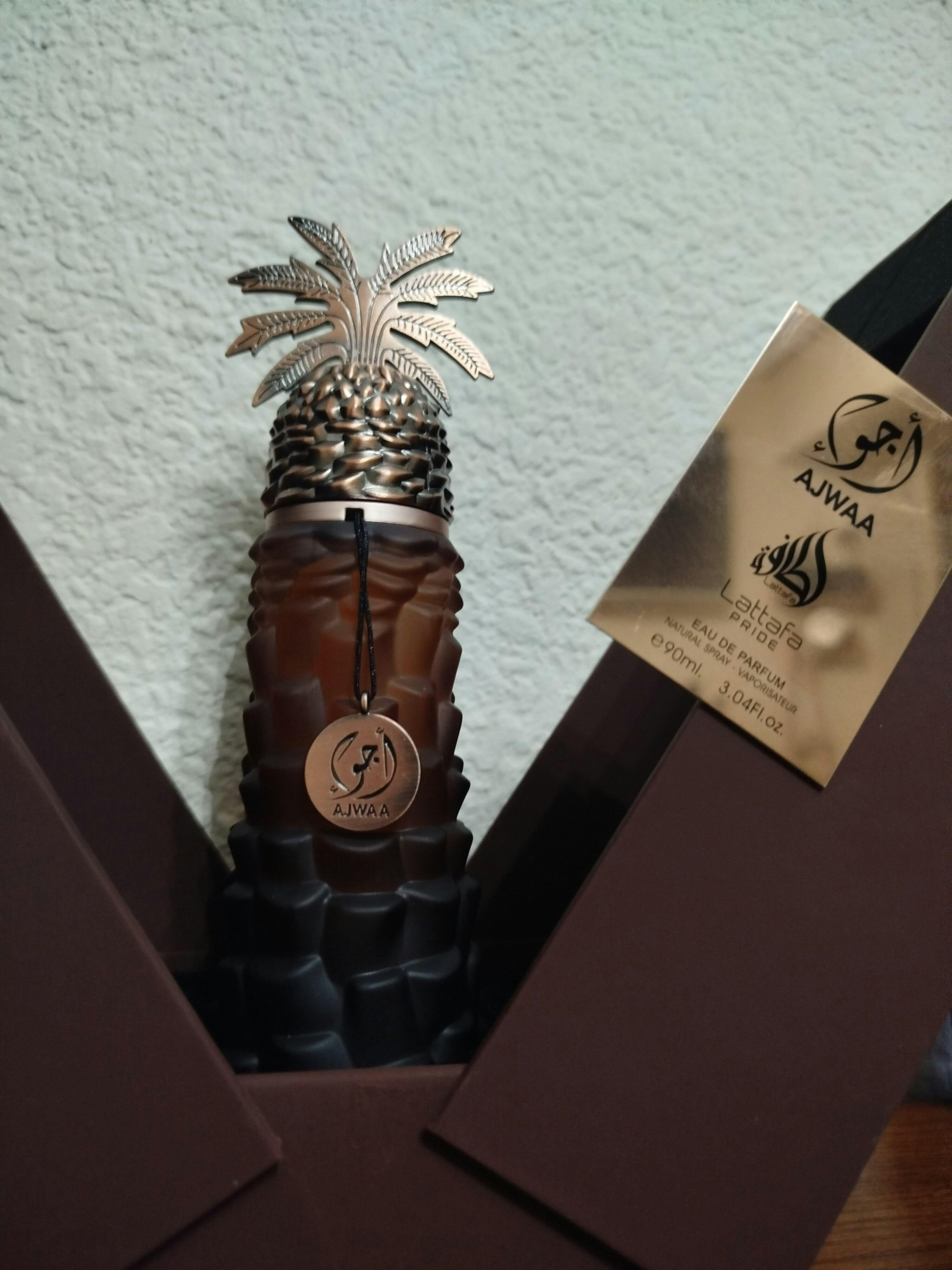 Ajwaa de Lattafa Perfumes es una fragancia de la familia olfativa para Hombres y Mujeres. Esta fragrancia es nueva. Ajwaa se lanzó en 2023. Las Notas de Salida son dátiles, elemí, limón (lima ácida) y bergamota; las Notas de Corazón son regaliz y mirra; las Notas de Fondo son benjuí y incienso.